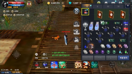 카발 메뉴 - 아이템샵 또는 화면 상단 중앙 + 버튼을 터치하면 아이템샵으로 연결된다.