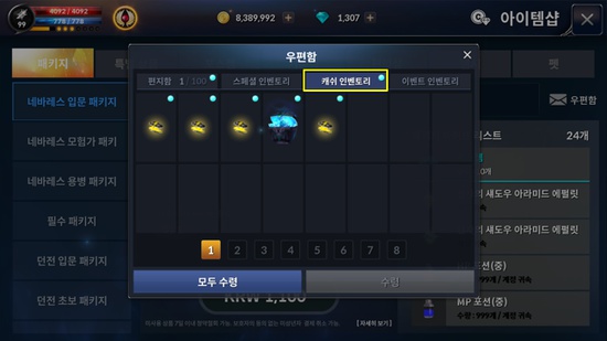 ※ 캐시 인벤토리는 [우편함] - [캐시 인벤토리]에서 확인할 수 있다.