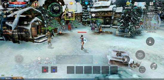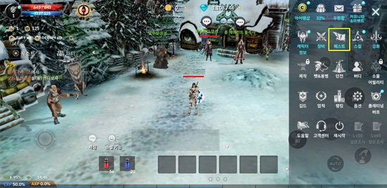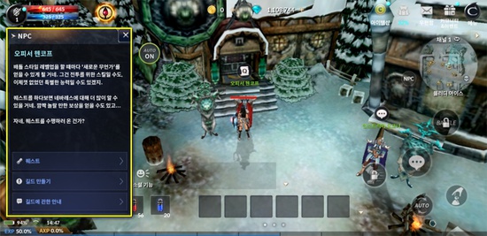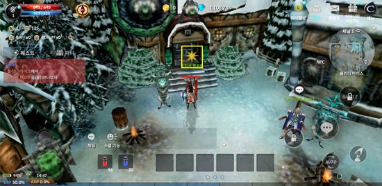 진행해야할 퀘스트 있는 경우 해당 NPC 머리 위에 Q아이콘을 확인할 수 있고, 해당 NPC를 터치하여 관련