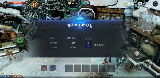 퀘스트를 완료한 후에는 퀘스트 완료 보상을 받을 수 있다.