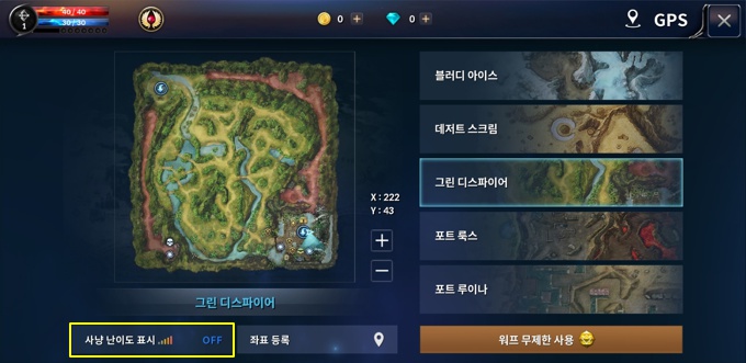 사냥 난이도 표시 등을 할 수 있다.