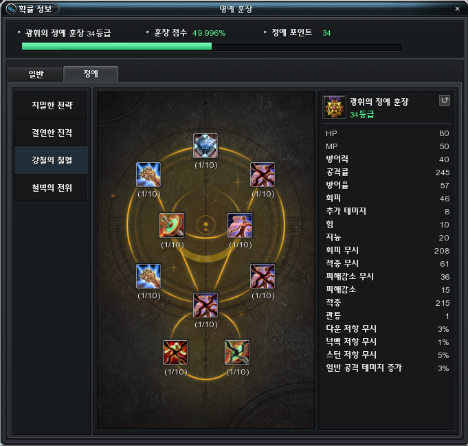 ● 정예 훈장 카테고리는 총 4개 : 치밀한 전략, 결연한 진격, 강철의 철혈, 철벽의 전위