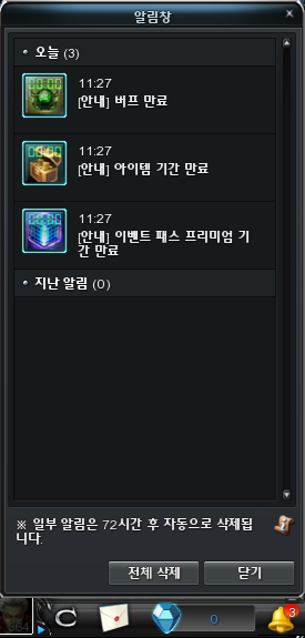 미궁 | 1, 2, 3회차 | 명예의 비약 (3,000,000) | 캐릭터 귀속 | 3시간 | |