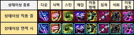 ● PVP 시, 상태이상에 걸린 순간부터 [상태이상 지속시간 + 2초]간 동일 상태이상에 대한 면역 부여